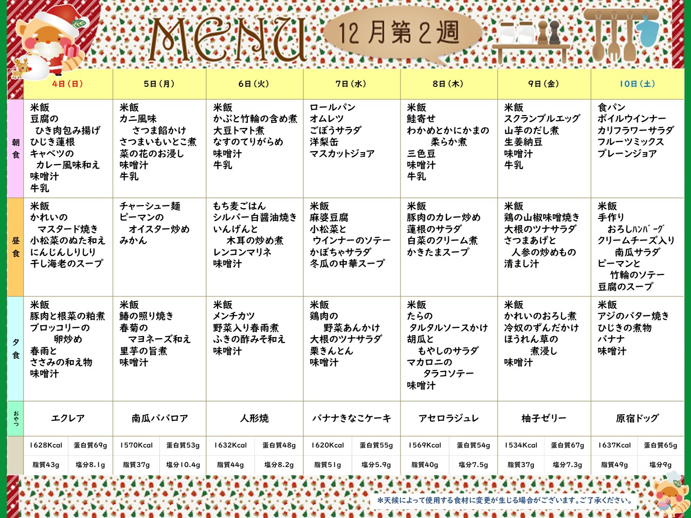 12月25日(日)昼食 特別食(クリスマスメニュー)